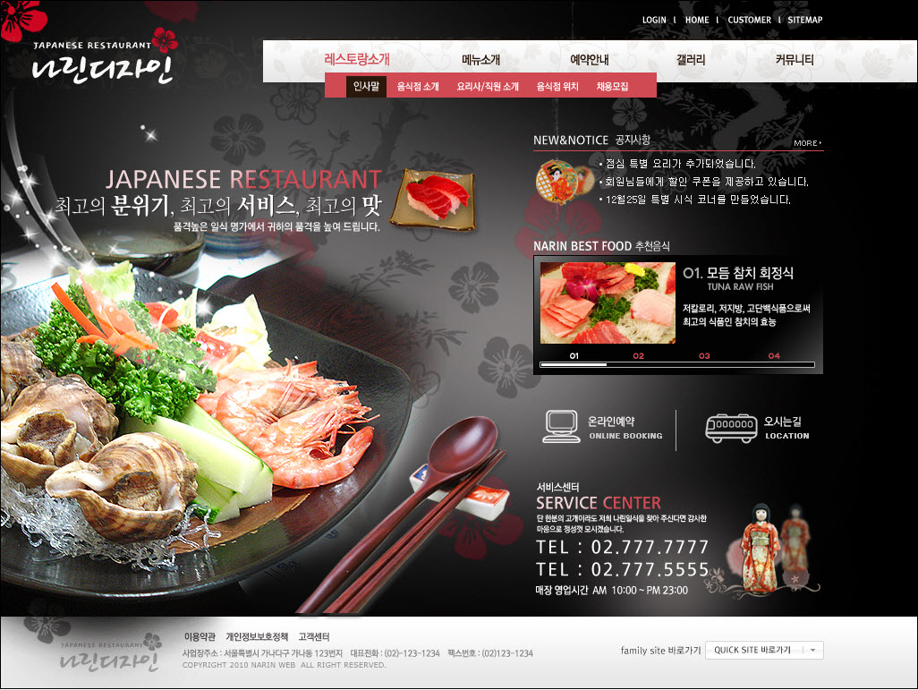음식점 홈페이지제작에 적합한 홈페이지제작 서비스(솔루션기능 제공)