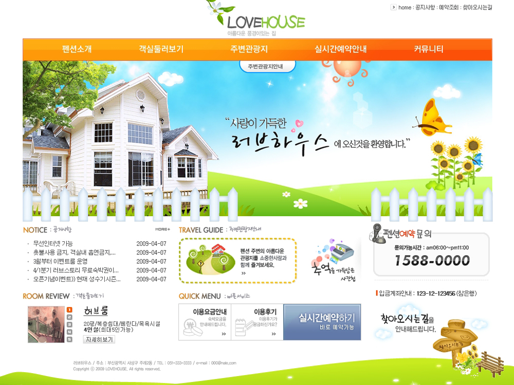 펜션 홈페이지제작에 적합한 홈페이지제작 서비스(솔루션기능 제공)