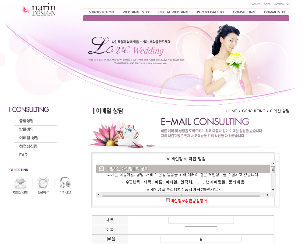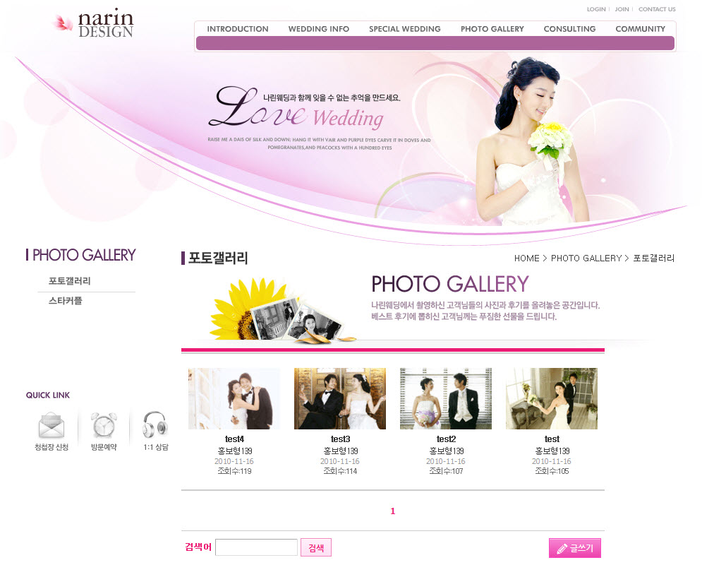 웨딩/스튜디오 홈페이지제작에 적합한 홈페이지제작 서비스(솔루션기능 제공)