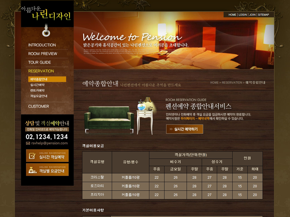 펜션 홈페이지제작에 적합한 홈페이지제작 서비스(솔루션기능 제공)