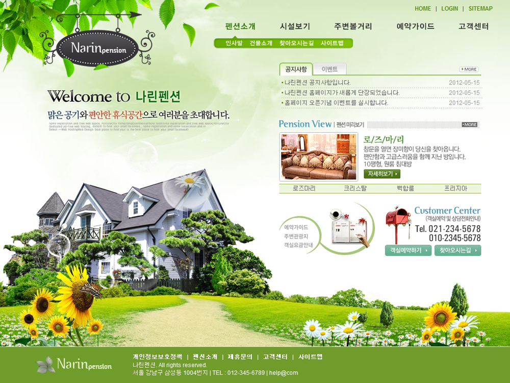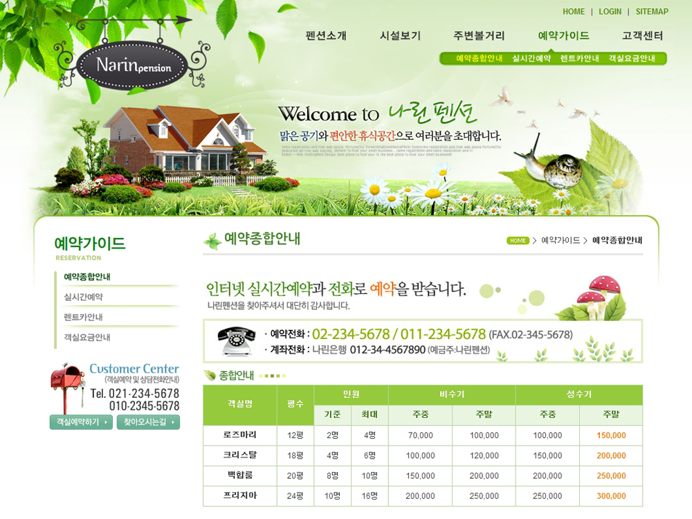 펜션 홈페이지제작에 적합한 홈페이지제작 서비스(솔루션기능 제공)
