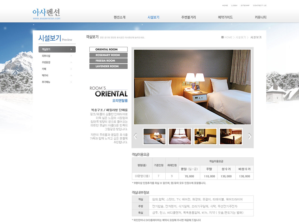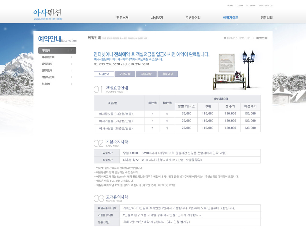 펜션 홈페이지제작에 적합한 홈페이지제작 서비스(솔루션기능 제공)