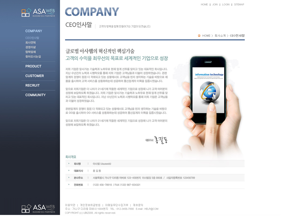 [기업홍보형] 홈페이지제작에 적합한 홈페이지제작 서비스(솔루션기능 제공)