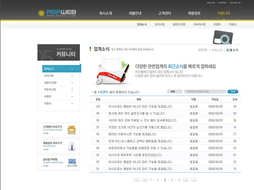 [기업홍보형] 홈페이지제작에 적합한 홈페이지제작 서비스(솔루션기능 제공)