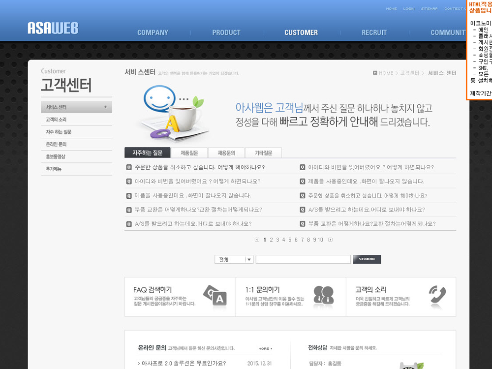 홈페이지 유지보수 및 부가서비스 안내 홈페이지제작상담게시판