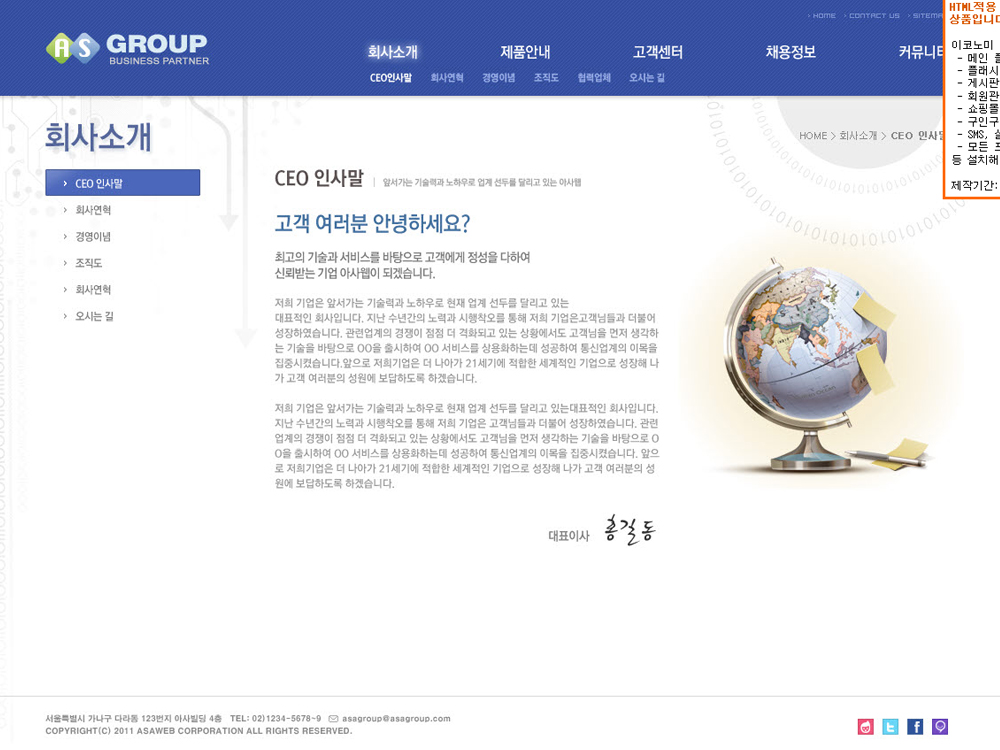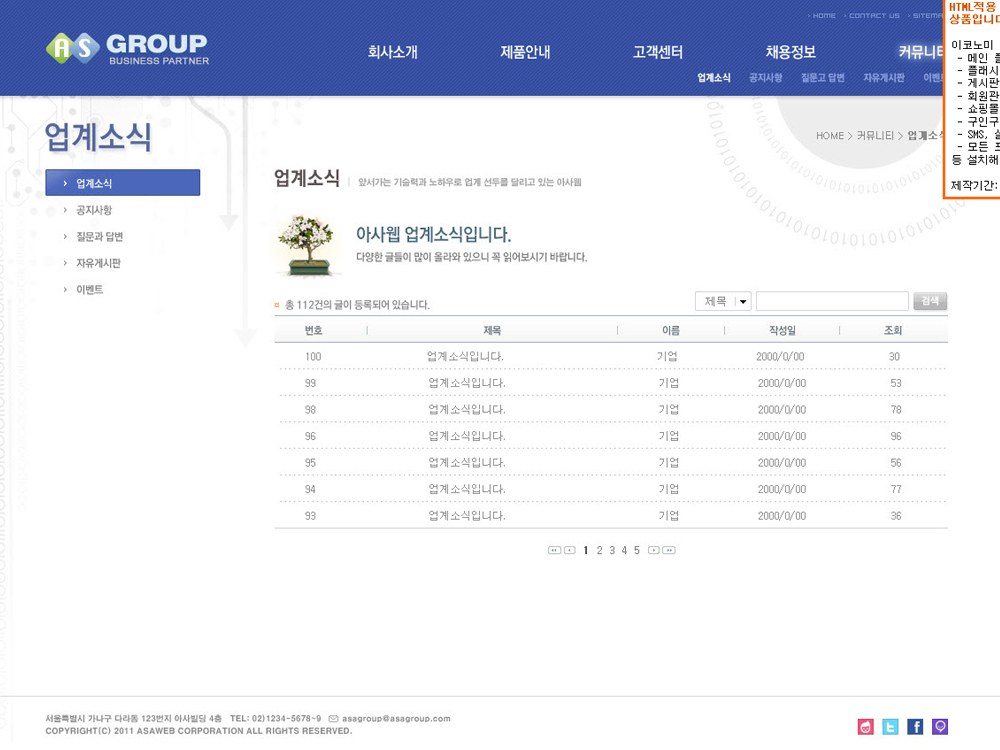 [기업홍보형] 홈페이지제작에 적합한 홈페이지제작 서비스(솔루션기능 제공)