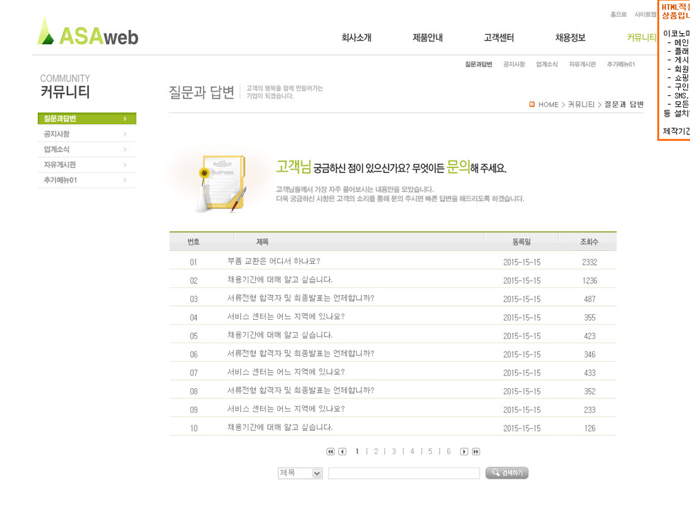 홈페이지 유지보수 및 부가서비스 안내 홈페이지제작상담게시판