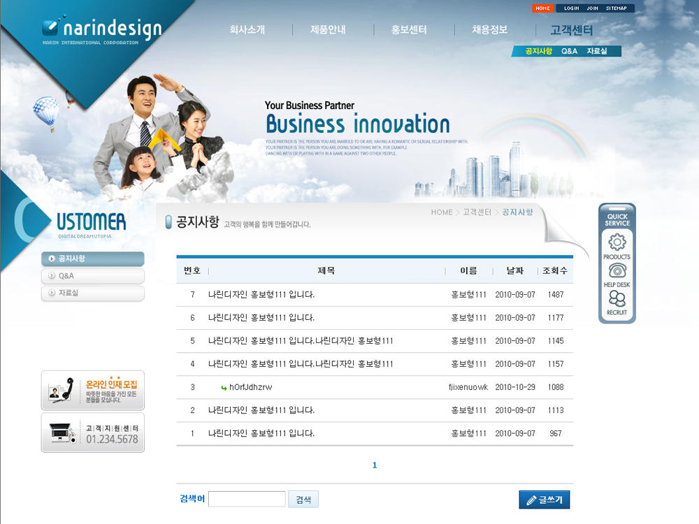 홈페이지 유지보수 및 부가서비스 안내 홈페이지제작상담게시판