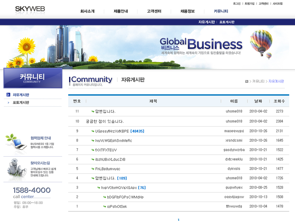 홈페이지 유지보수 및 부가서비스 안내 홈페이지제작상담게시판